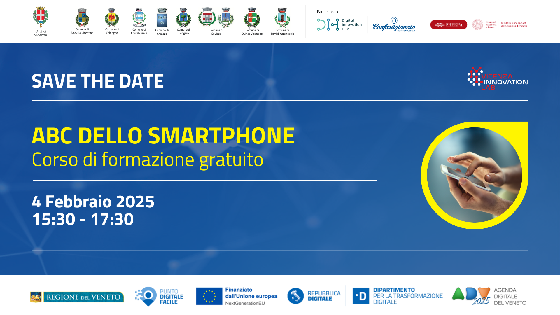 Il 4 febbraio 2025 ore 15:30-17:30 si terrà una nuova edizione del corso di formazione gratuito "ABC dello Smartphone".