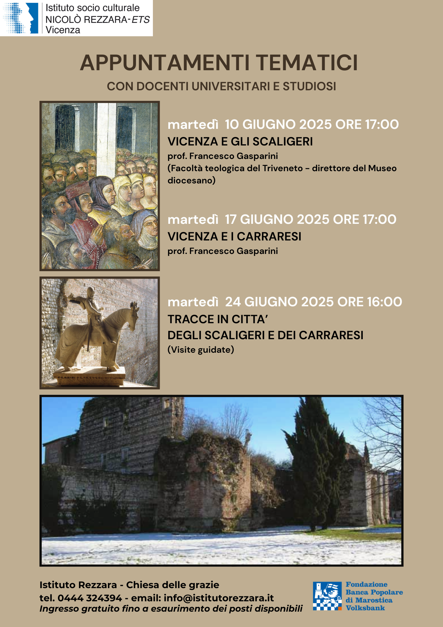 Martedì 24 giugno ore 16 l'Istituto Rezzara organizza visite guidate sul tema "Tracce in città degli Scaligeri e dei Carraresi".
