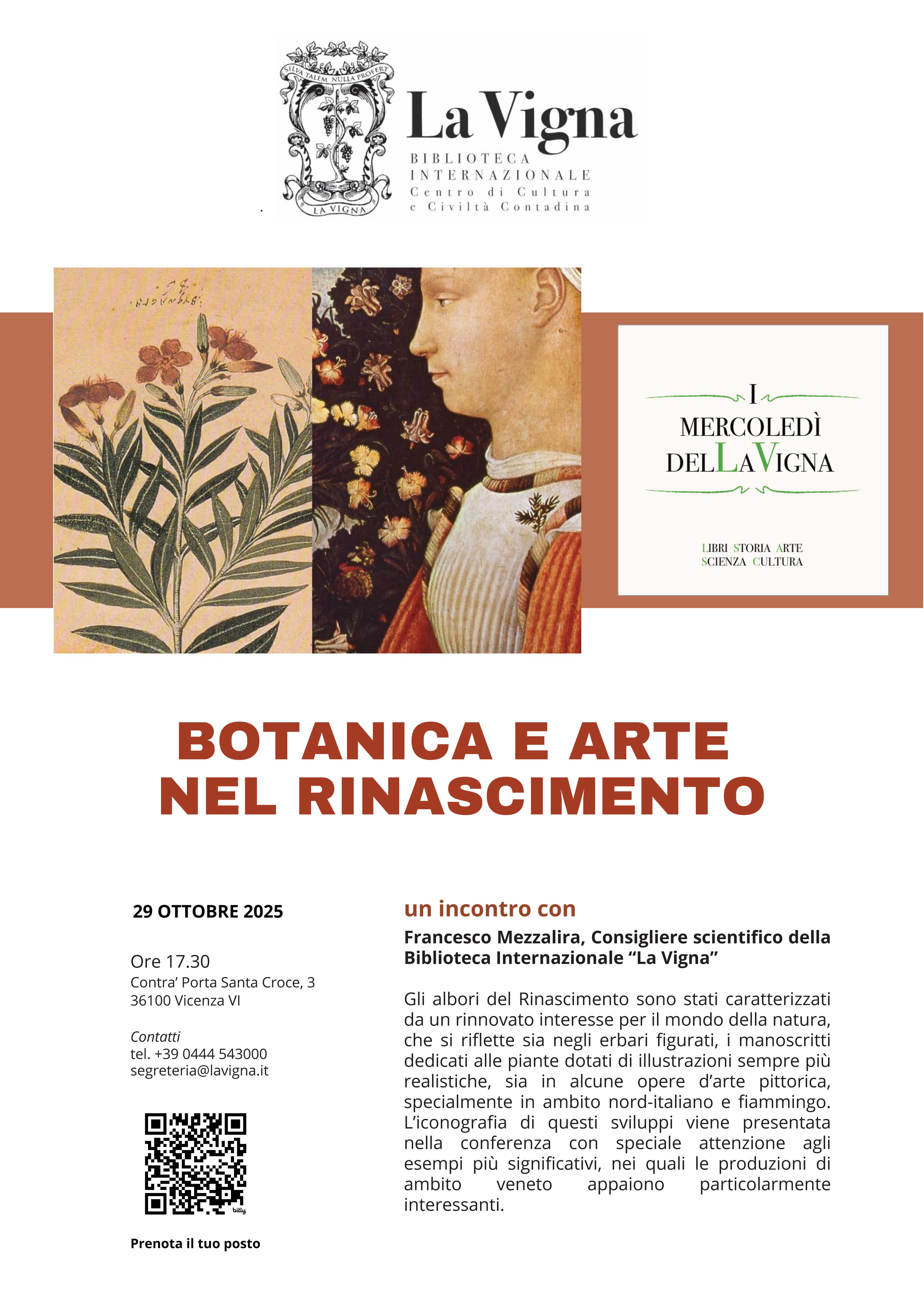 È il primo appuntamento del ciclo “I mercoledì della Vigna”, una serie di incontri culturali promossi dal Consiglio scientifico della Biblioteca “La Vigna”. Il programma propone temi legati a libri, storia, arte, scienza e cultura, con uno sguardo sempre attento alle collezioni della Biblioteca, per valorizzarle e farle conoscere al pubblico.