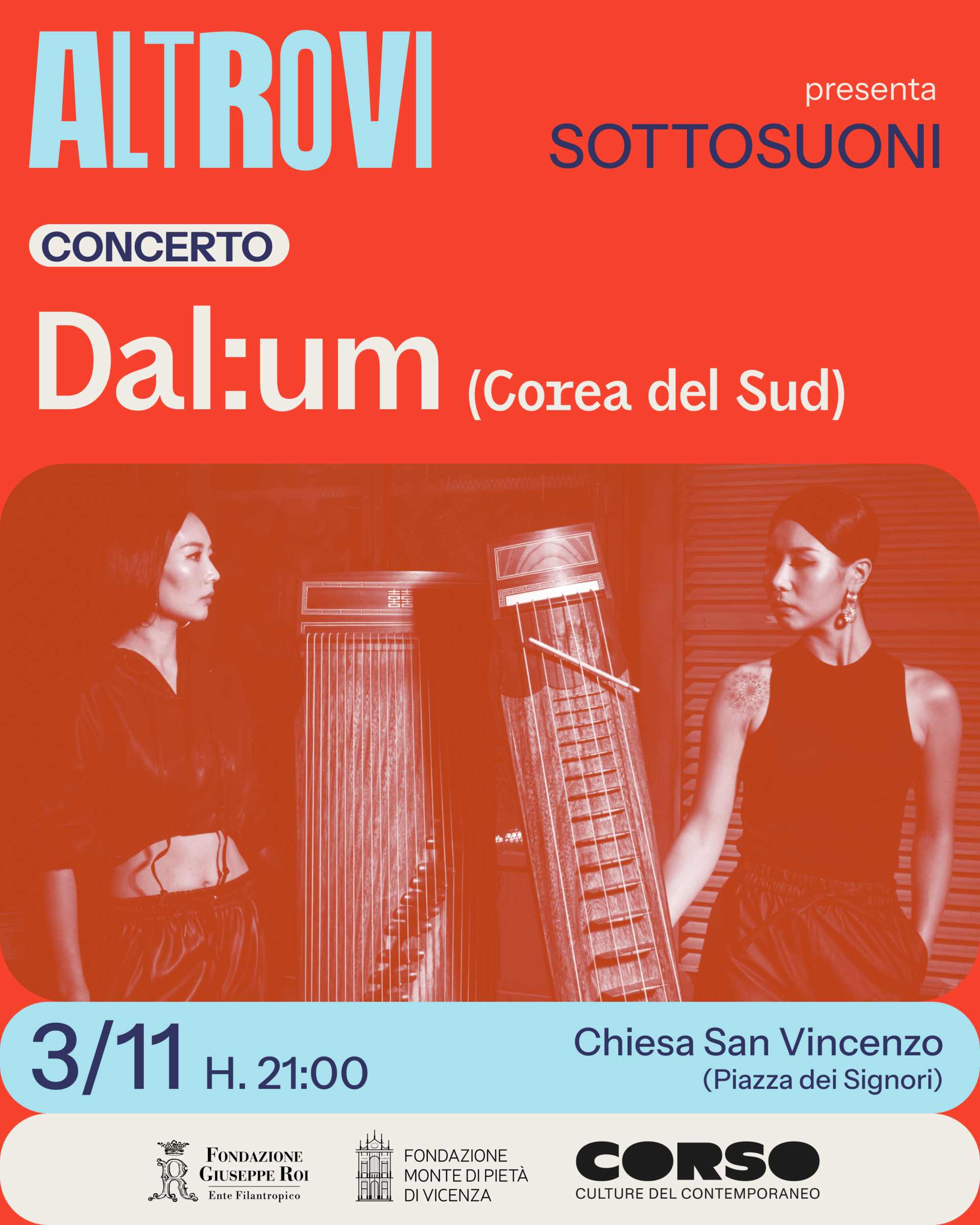 Domenica 3 novembre alle ore 21.00, la Chiesa di San Vincenzo in un evento targato Altrovi ospita il concerto delle Dal:um, duo sudcoreano che si esibisce per la prima volta a Vicenza.