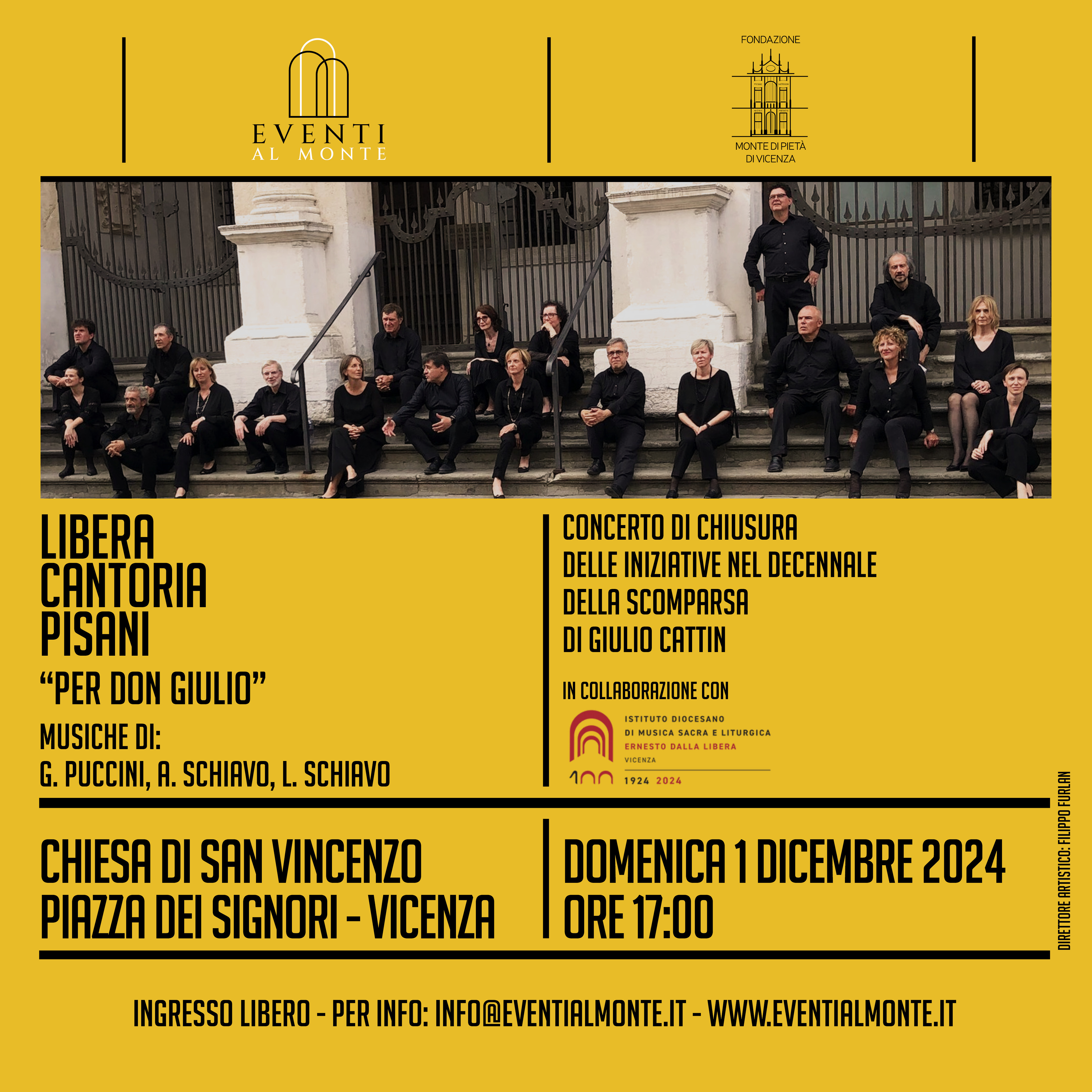 Un ricordo particolare nel giorno di ricorrenza del decennale della scomparsa di Giulio Cattin, musicologo raffinato e indimenticato rettore della chiesa di San Vincenzo, ove fu propugnatore di un vero, felice decoro musicale nella liturgia. A chiusura di un articolato cartellone di iniziative promosso nel corso dell’anno dall’Istituto Diocesano per la Musica Sacra e Liturgica di Vicenza, il breve concerto della Cantoria intende riportare Mons. Cattin, anzi, don Giulio (come lui avrebbe preferito) nella sua “casa” di San Vincenzo; omaggiandone la figura umana, sempre più rimpianta da chi ha avuto il privilegio di incontrarne la ricchezza. Il programma si incentra sul piccolo, sereno “Requiem” di Giacomo Puccini, nel centenario della morte del grande compositore. Concerto in collaborazione con Istituto Diocesano Di Musica Sacra “Ernesto Dalla Libera”.