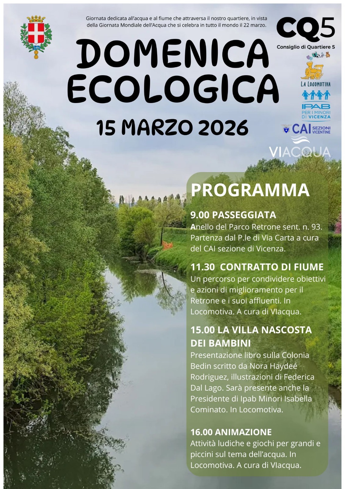 Elenco delle attività in programma, a cura del Consiglio di Quartiere n. 5 e con la collaborazione di La Locomotiva, IPAB per i minori di Vicenza, CAI Sezioni vicentine, ViAcqua: