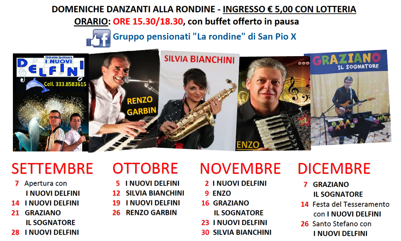 Ore 15:30 Inizio pomeriggio danzante con musica dal vivo;