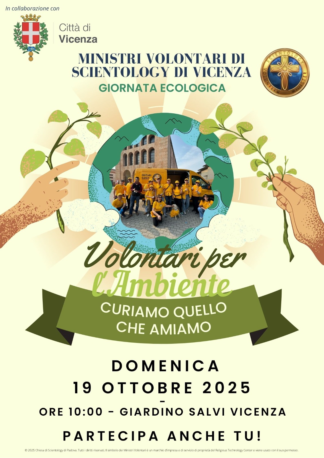 I Ministri Volontari di Scientology di Vicenza hanno deciso di partecipare alla Giornata Ecologica prevista per domenica 19 ottobre. Dalle ore 10:00 si troveranno con chiunque abbia a cuore il verde pubblico, al Giardino Salvi per un'iniziativa di clean-up (raccolta rifiuti).