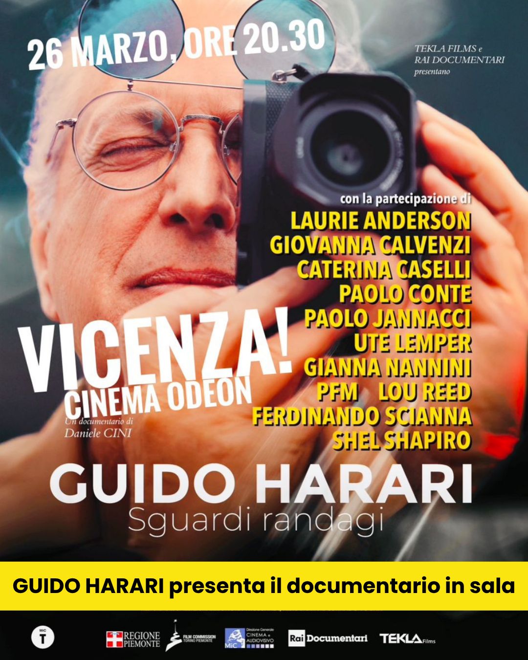 Giovedì 26 marzo alle 20.30 Guido Harari presenterà al cinema Odeon il documentario “Guido Harari. Sguardi randagi”, diretto da Daniele Cini e prodotto da Tekla Films per RaiDoc.