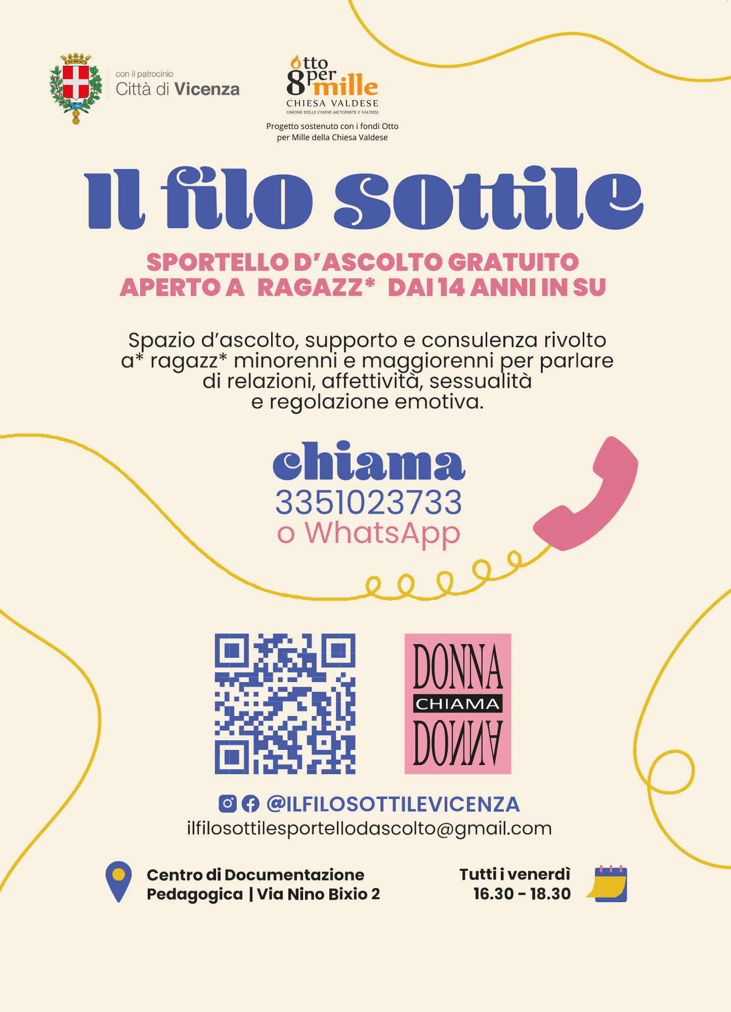 In occasione della Giornata Internazionale contro la Violenza sulle Donne, le professioniste dell'Associazione Donna Chiama Donna presentano il nuovo spazio d'ascolto Il Filo Sottile per giovani a partire dai 14 anni.