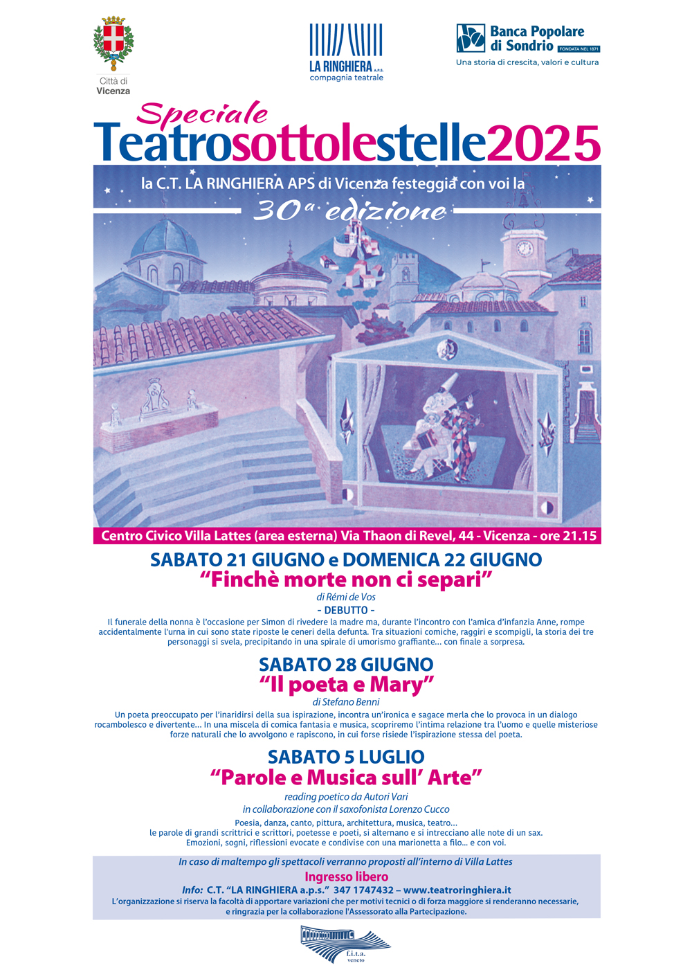 Un poeta preoccupato per l’inaridirsi della sua ispirazione, incontra un’ironica e sagace merla che lo provoca in un dialogo rocambolesco e divertente…In una miscela di comica fantasia e musica, scopriremo l’intima relazione tra l’uomo e quelle misteriose forze naturali che lo avvolgono e rapiscono,