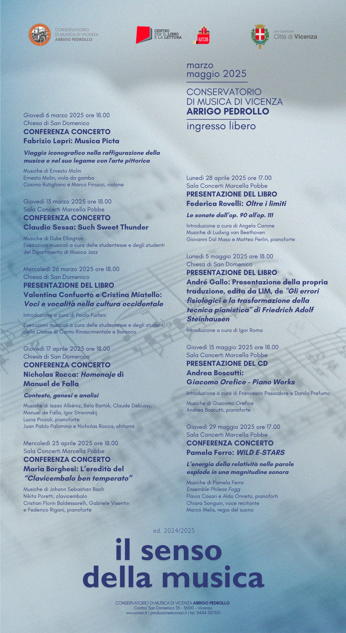 Il dialogo tra autori e autrici sarà accompagnato da un’esecuzione musicale degli studenti del Dipartimento di musica antica del Conservatorio, coordinati dal prof. Marco Scavazza, docente di Canto rinascimentale e barocco. Saranno eseguiti brani di rarissimo ascolto: mottetti di Alba Tressina, una compositrice vicentina del Seicento, monaca clarissa del convento di Santa Maria in Araceli a Vicenza.
