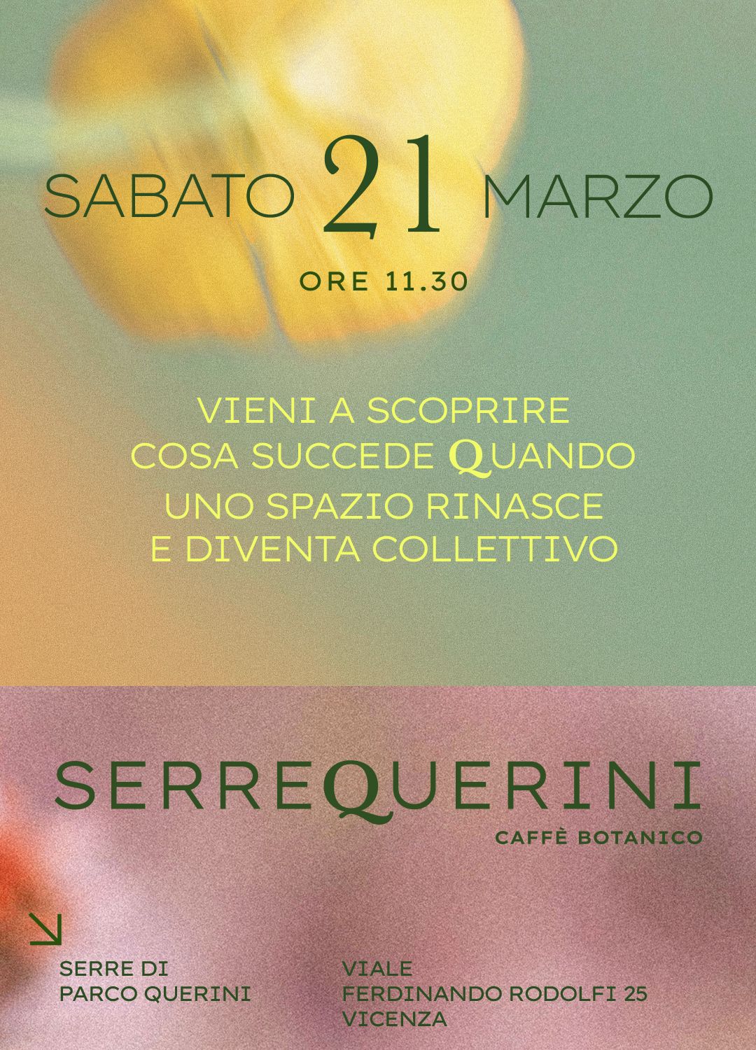Inaugurazione di serreQuerini, un nuovo spazio dove il verde diventa incontro, le idee mettono radici e la comunità trova un posto in cui stare bene. Un invito a festeggiare insieme e a scoprire dal vivo questo luogo che rinasce all'interno di Parco Querini.