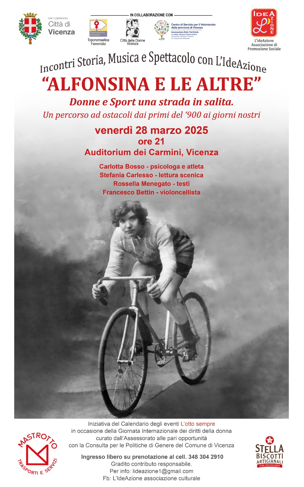 Incontri Storia, Musica e Spettacolo. Alfonsina e le Altre un percorso ad ostacoli dai primi del '900 ai giorni nostri. Il 28 marzo alle 21 all'Auditorium dei Carmini
