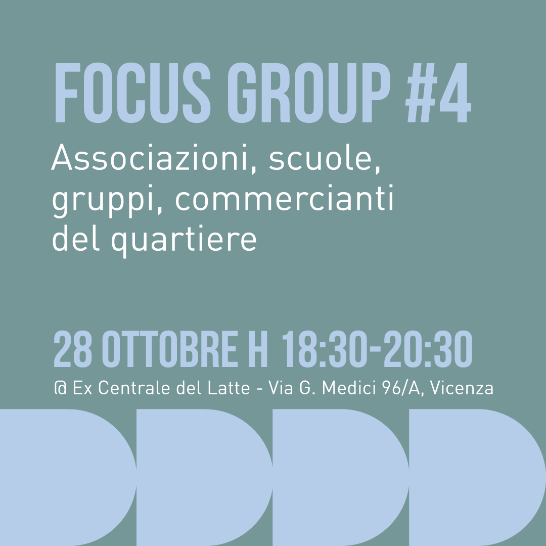 Un percorso partecipativo in 5 focus group a cura di Focus Giovani Vicenza, con la facilitazione di Fondazione Capta onlus. La quarta serata è rivolta ad associazioni, scuole, gruppi e commercianti del quartiere.