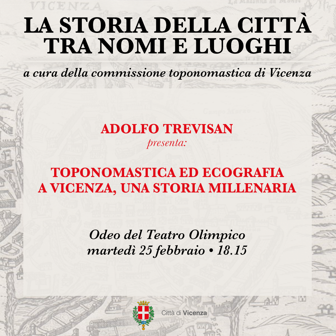 Si parlerà della storia della città martedì 25 febbraio alle 18.15 all'Odeo del Teatro Olimpico. Sarà l'occasione per farlo attraverso i nomi e i luoghi di Vicenza.