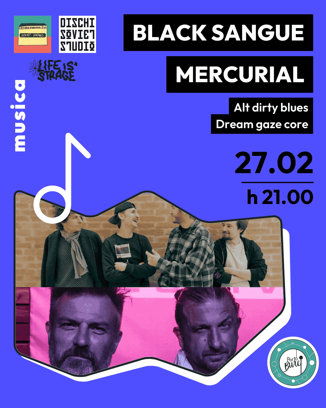 Una serata per fare il pieno di energia qui a Porto Burci con due band vicentine: i Black Sangue e i Mercurial.
