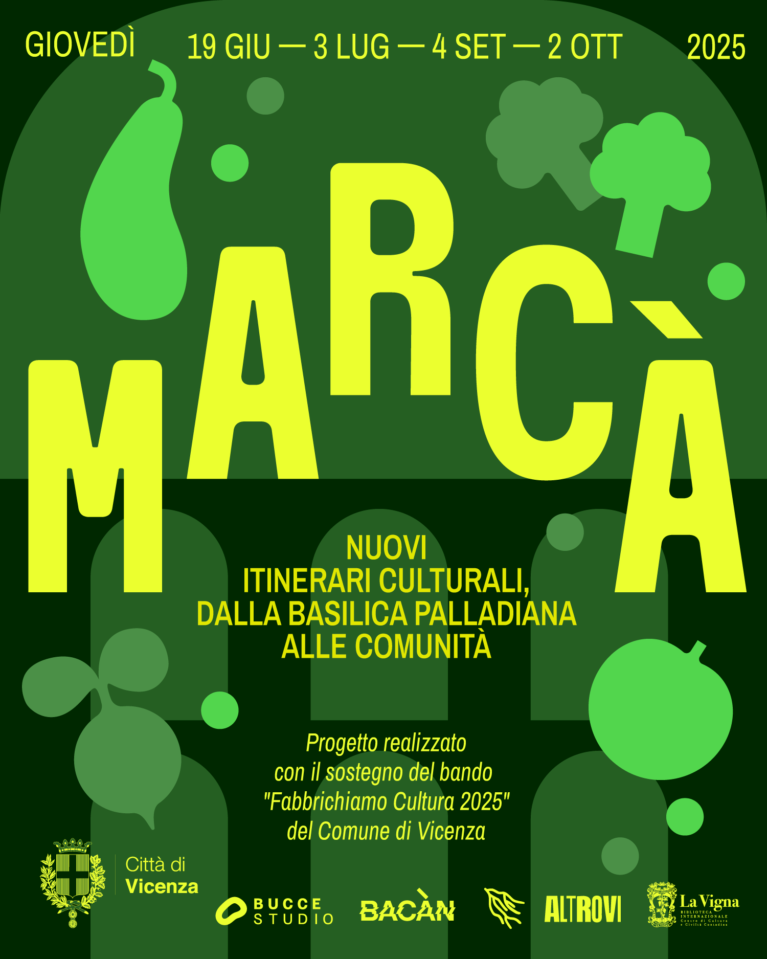Marcà. Nuovi itinerari culturali, dalla Basilica Palladiana alle comunità è un progetto in collaborazione con Casa di Cultura Popolare, Associazione culturale Altrovi, Biblioteca  Internazionale "La Vigna" - Centro di Cultura e Civiltà Contadina e Associazione Culturale BACÀN.