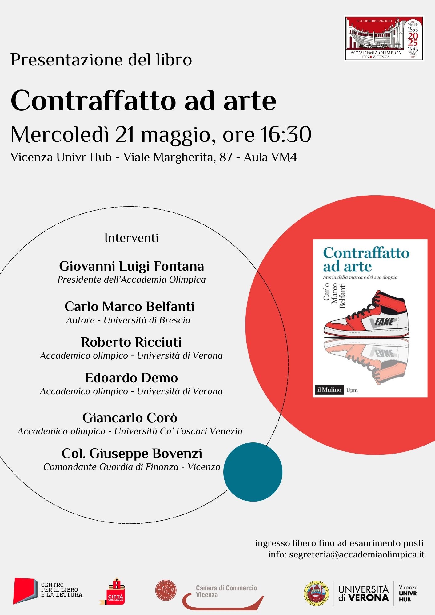 A conversare con l’autore saranno Giovanni Luigi Fontana, presidente dell’Accademia Olimpica e storico dell’economia, Roberto Ricciuti ed Edoardo Demo, docenti dell’Università di Verona, Giancarlo Corò, docente dell’Università Ca’ Foscari di Venezia, tutti accademici olimpici, e il comandante della Guardia di Finanza di Vicenza, colonnello Giuseppe Bovenzi.
