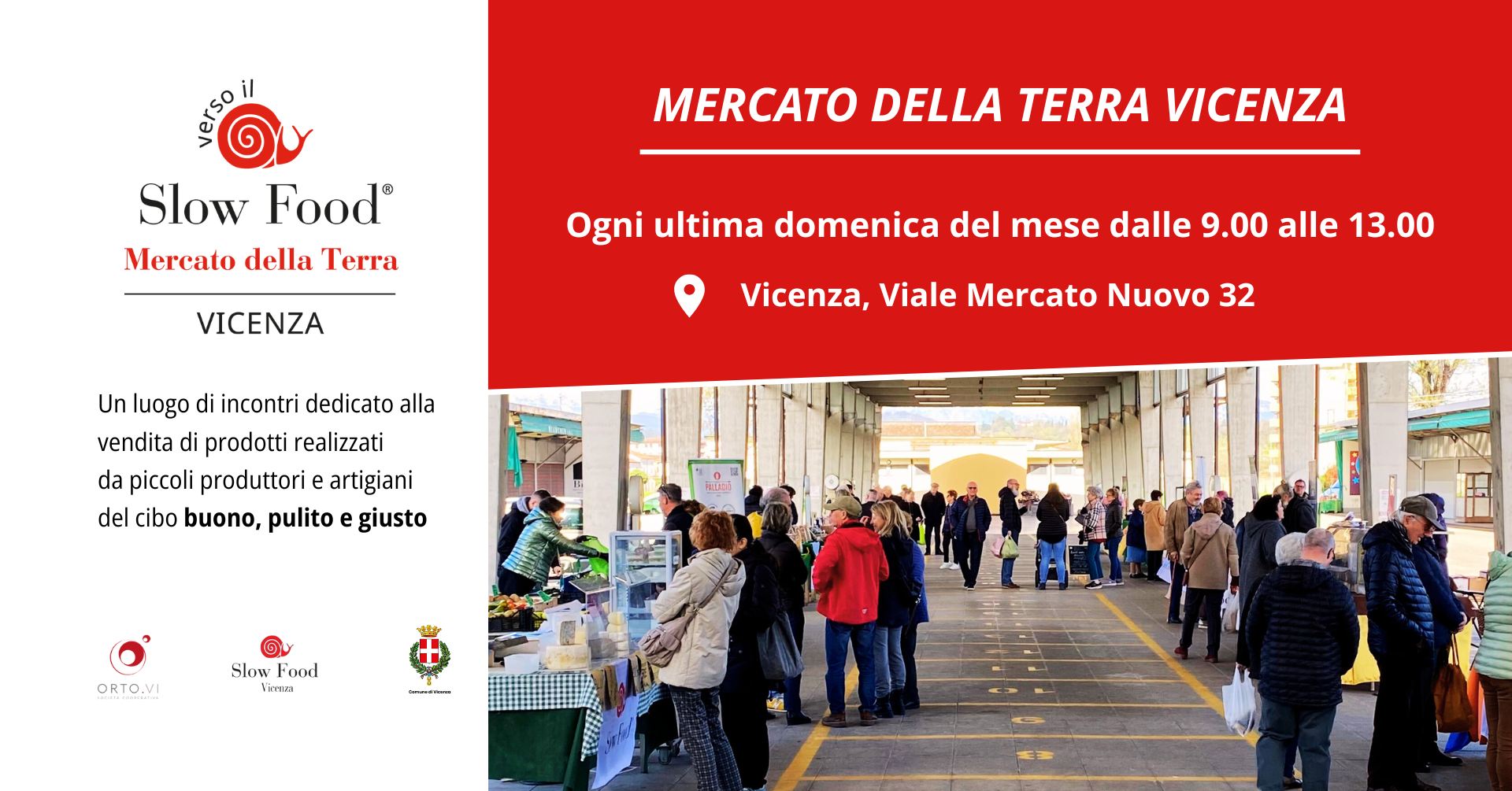 Il MERCATO DELLA TERRA, in collaborazione con Slow Food Vicenza e OrtoVi, è presente ogni ultima domenica del mese all'interno degli spazi del Mercato Ortofrutticolo in viale del Mercato Nuovo 32 a Vicenza.Il Mercato della Terra è un luogo di incontro dedicato alla vendita di prodotti realizzati da piccoli produttori e artigiani del cibo buono pulito e giusto, che possono garantire e raccontare in prima persona la qualità dei loro prodotti.Prossimo appuntamento: domenica 25 maggio 2025 dalle 9.00 alle 13.00!Per info: mercatodellaterravicenza@gmail.com