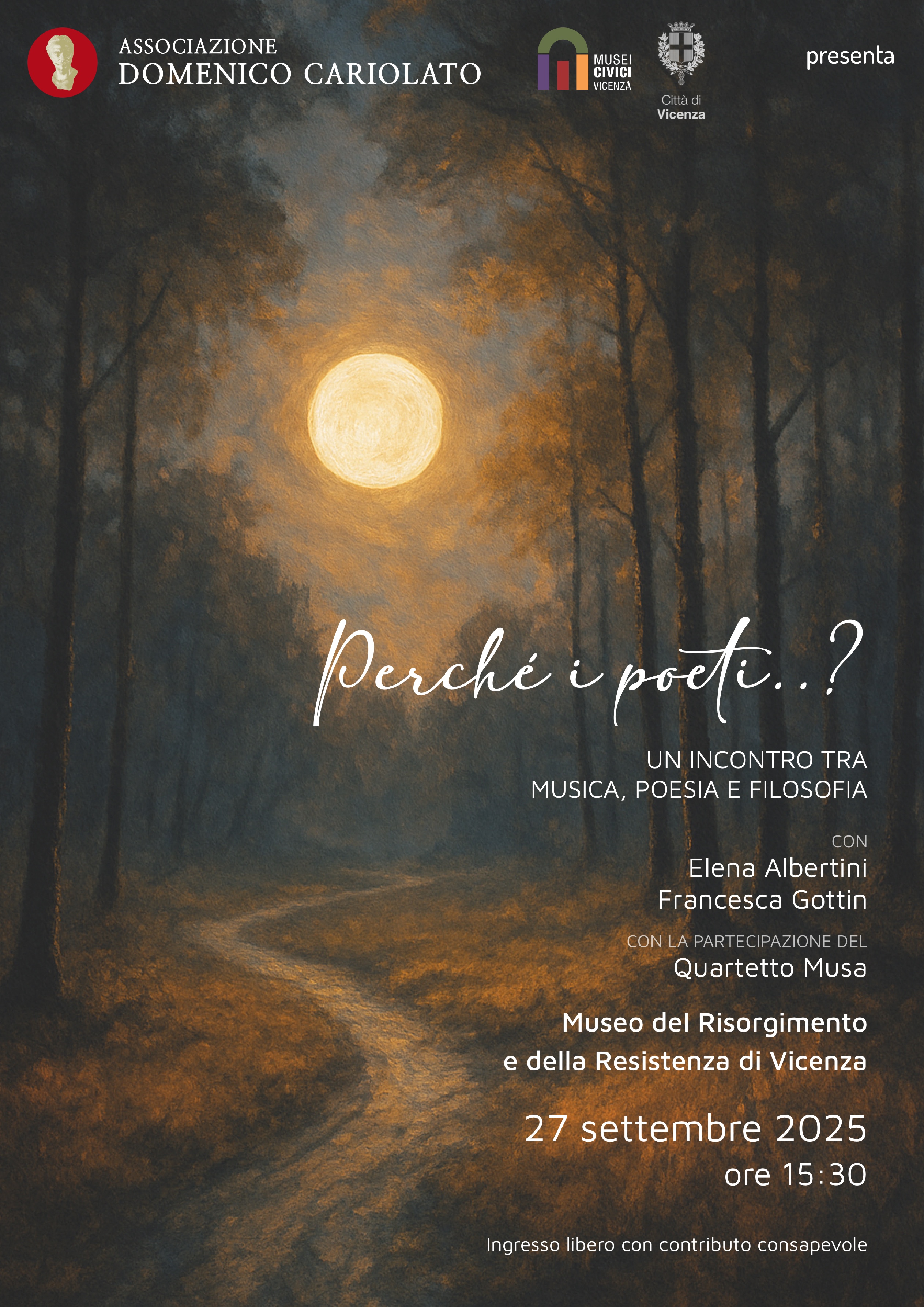 Conferenza a due voci e interventi musicali di un quartetto vocale. "Perché i poeti nel tempo della povertà?" si chiedeva un poeta già all'inizio dell'Ottocento. Quale ruolo per la poesia nel mondo d'oggi dominato dalla tecnica? Tutto è possibile nell'incontro tra musica, poesia e filosofia.