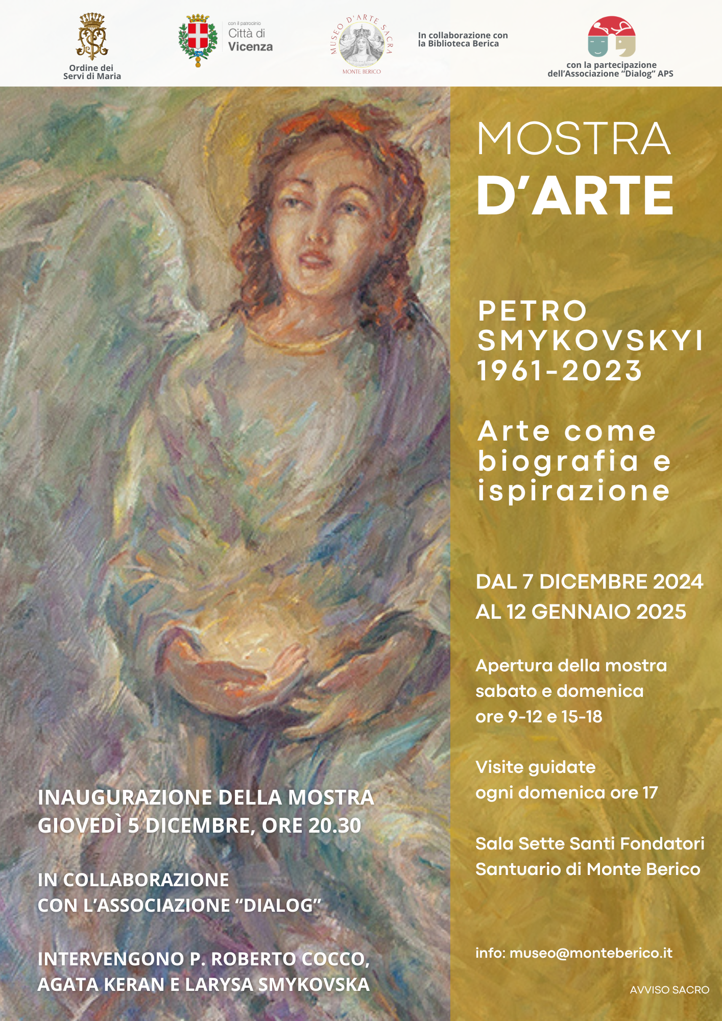 L’inaugurazione si terrà giovedì 5 dicembre 2024, alle ore 20.30. Interverranno i curatori padre Roberto Cocco e Agata Keran, assieme a Larysa Smykovska, consorte dell’artista.