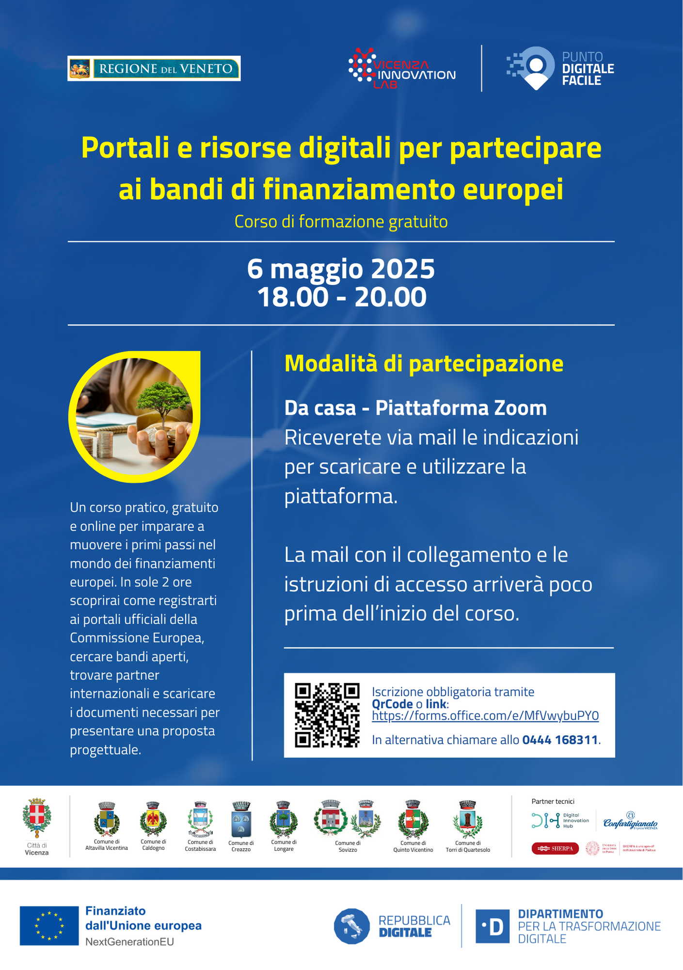 Online – accesso gratuito previa iscrizione: si può utilizzare il link https://forms.office.com/e/MfVwybuPY0 oppure chiamare al 0444168311.