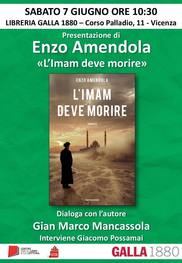 Presentazione del libro di Enzo Amendola “L’Imam deve morire“ Mondadori editore. Dialoga con l’autore Gian Marco Mancassola. Interviene Giacomo Possamai.