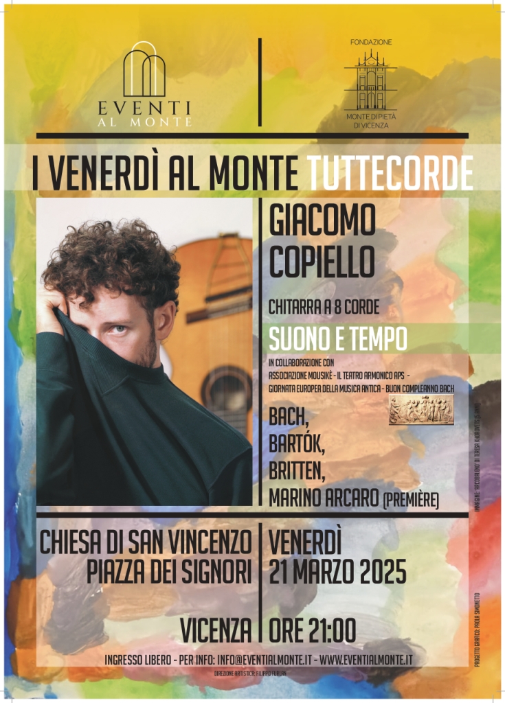 Proseguono con successo i concerti organizzati da Fondazione Monte di Pietà di Vicenza nell’ambito della stagione 2024-2025 di “Eventi al Monte”. Torna, anche quest’anno, l’atteso festival “I Venerdì al Monte”, giunto all’ottava edizione, che per il 2025 propone tre concerti dedicati agli strumenti cordofoni nella chiesa di San Vincenzo.