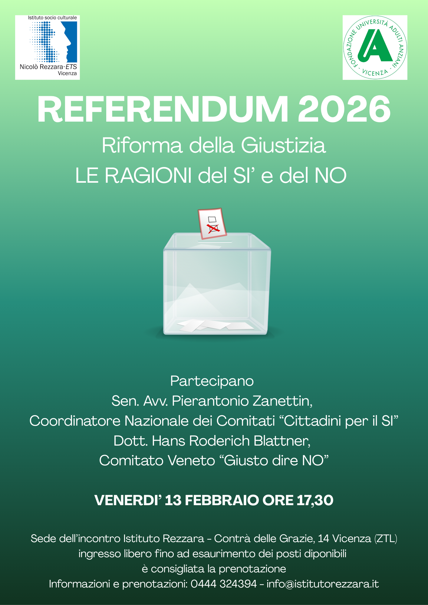 Venerdì 13 febbraio ore 17:30 incontro sul Referendum 2026 - Riforma della Giustizia, le ragioni del Sì e del No