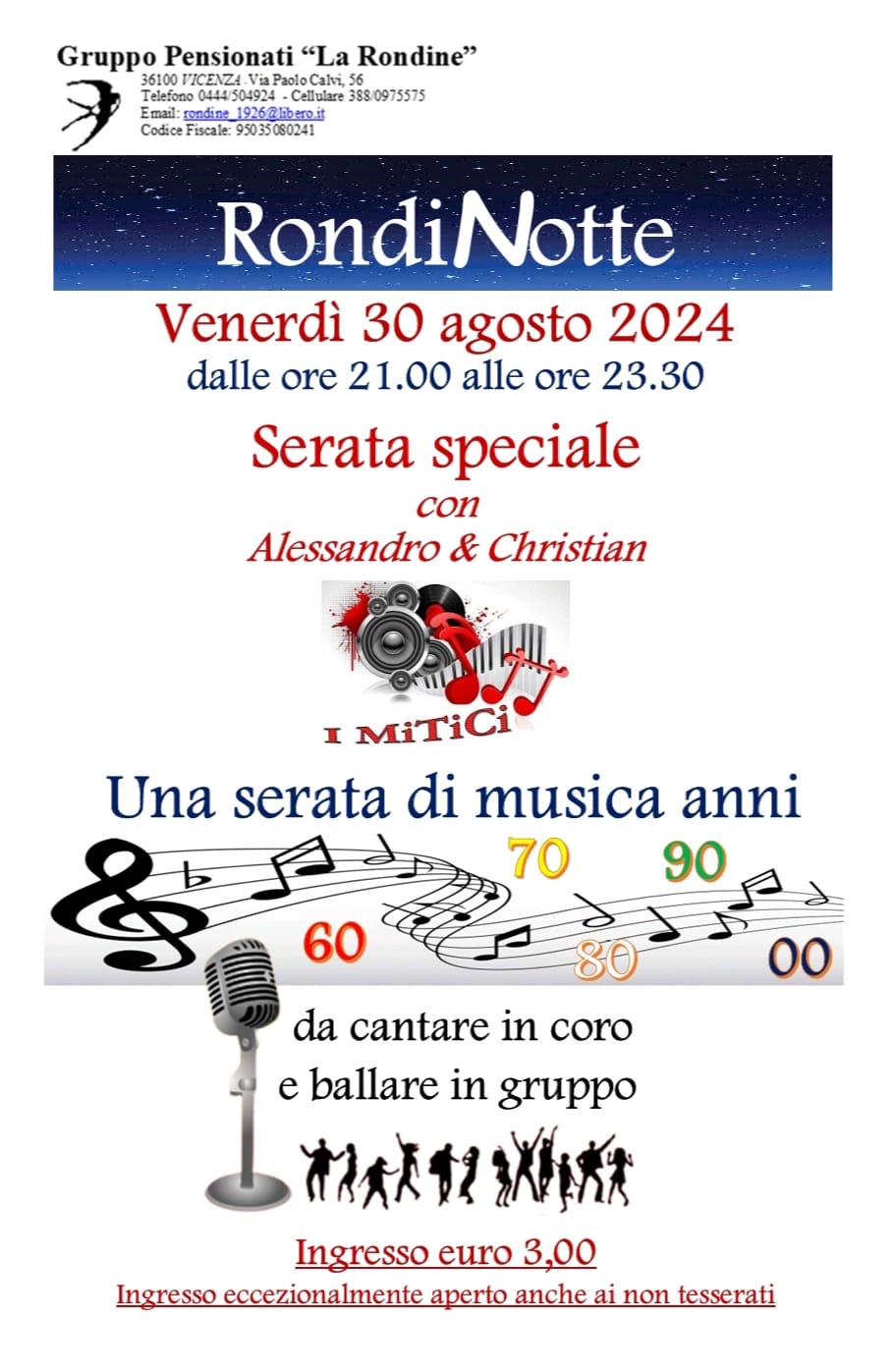 Serata di musica anni '60, '70, '80, '90, da cantare in coro e ballare in gruppo, con la partecipazione di Alessandro & Christian.