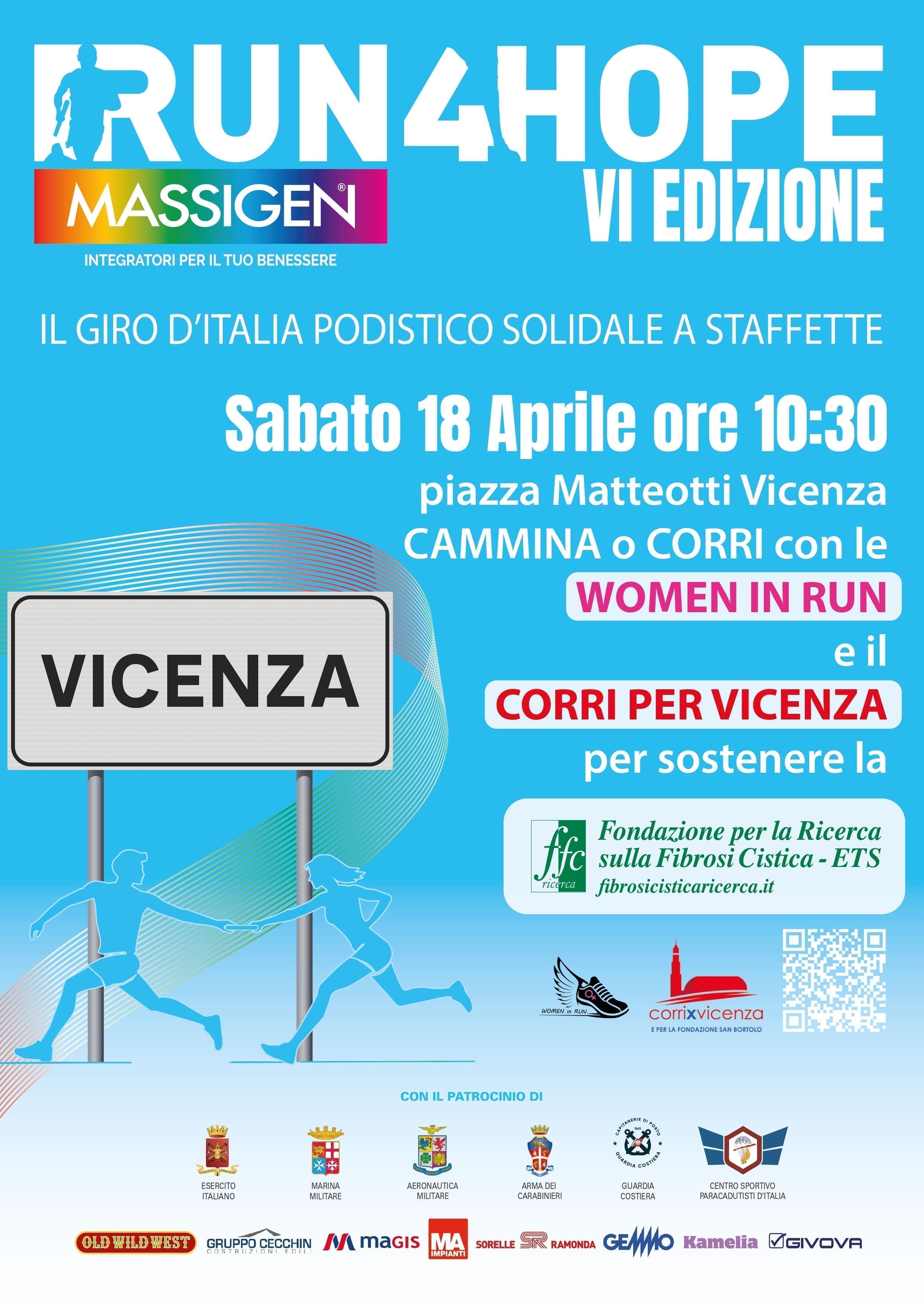 Il 6° Giro d’Italia podistico solidale a staffetta “Run4Hope Italia pro Fondazione Fibrosi Cistica” è una staffetta che abbraccerà tutta Italia in nome della solidarietà e coinvolgerà runner, singoli o in gruppi sportivi, associazioni, gruppi spontanei, aziendali o costituiti nell’ambito dei negozi di articoli sportivi.