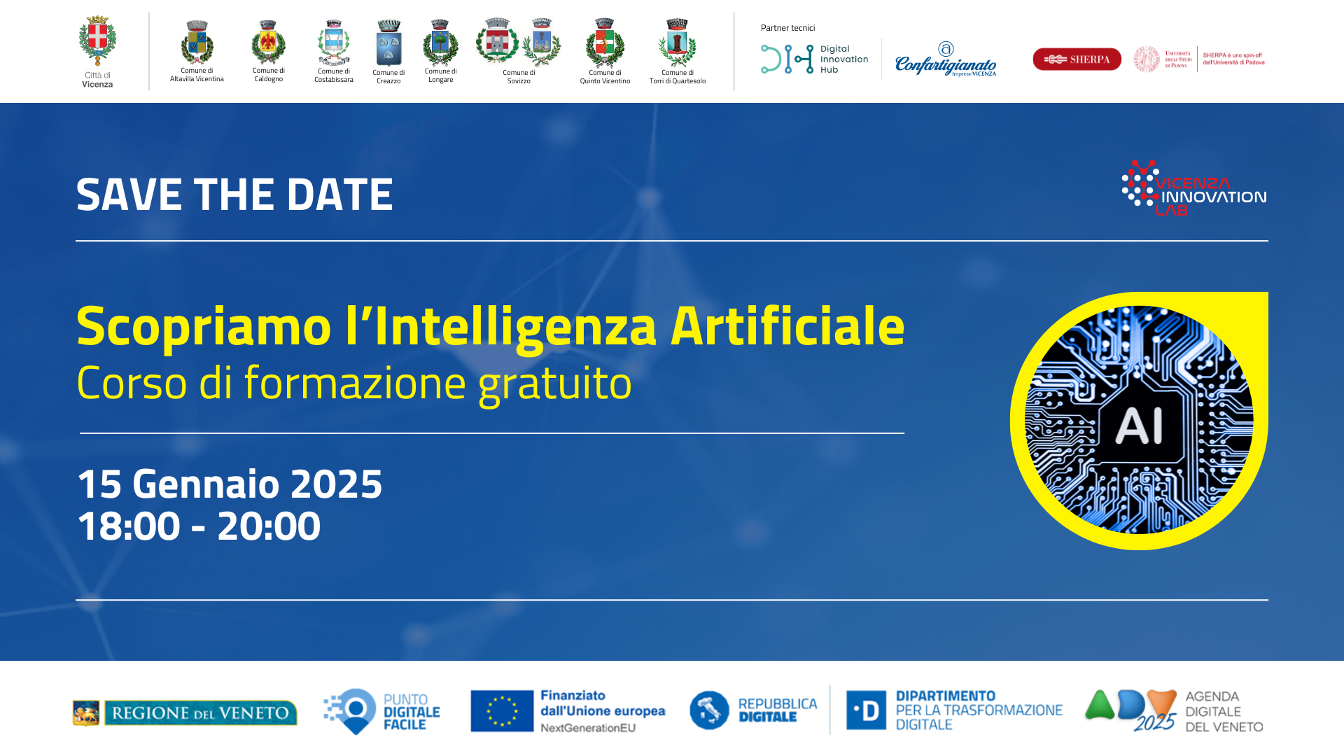 Con il nuovo anno ripartono i nostri corsi di formazione! Vi aspettiamo il 15 gennaio alle ore 18.00 al prossimo appuntamento dedicato all'Intelligenza Artificiale, in via Enrico Fermi 134 (VI) al 4° piano.