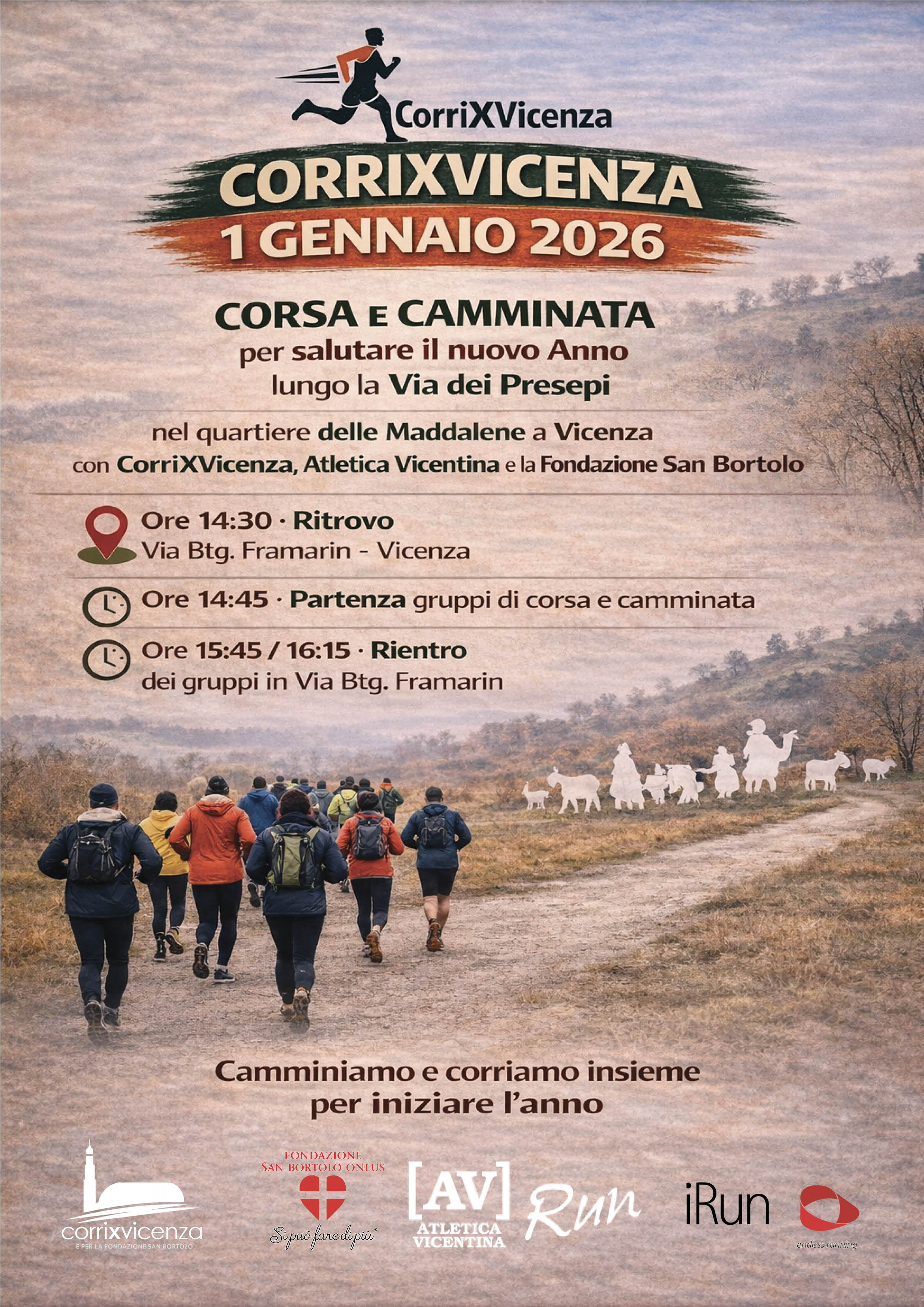 Corsa e camminata lungo la via dei Presepi nel quartiere delle Maddalene a Vicenza. Partenza da via Btg. Framarin