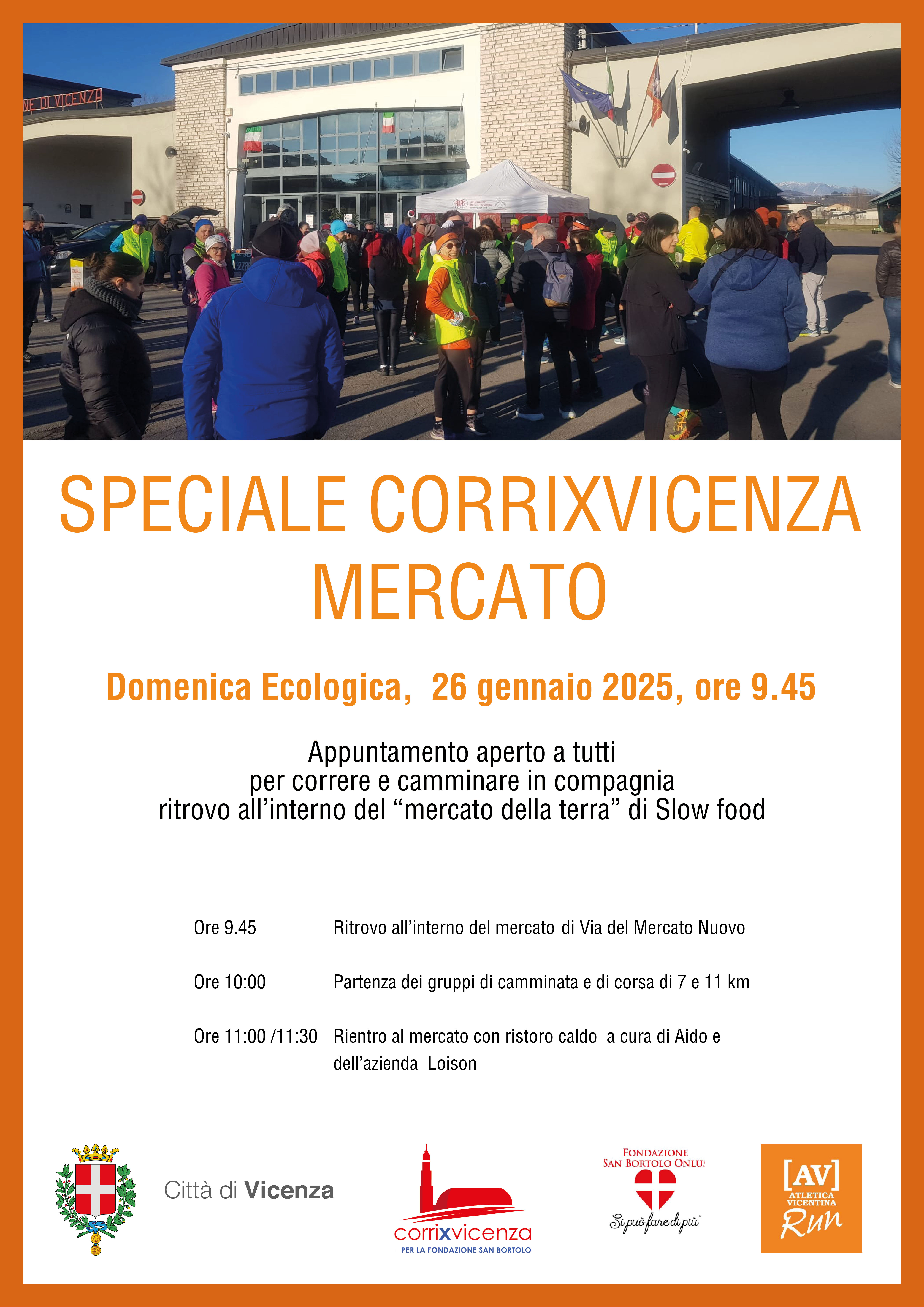 Corsa e camminata per la città in occasione della domenica ecologica. Partenza dal mercato ortofrutticolo.