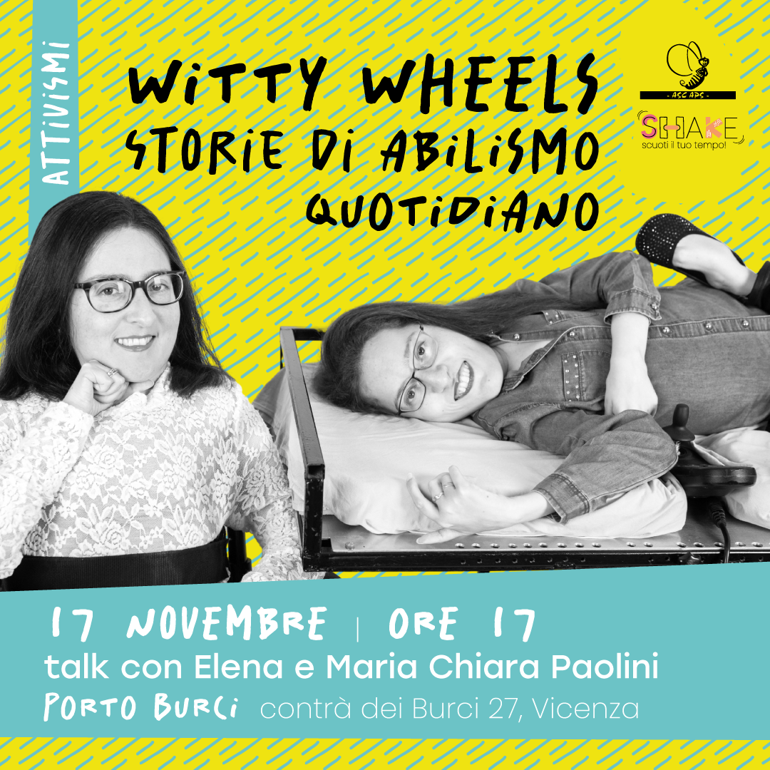 Lo faremo assieme a Maria Chiara ed Elena Paolini, attiviste, formatrici e autrici del blog Witty Wheels, che si occupano di giustizia sociale applicata alla disabilità. Dopo il saggio “Mezze persone”, pubblicano una graphic novel che svela i pregiudizi e l’oppressione strutturale che circondano ogni giorno le persone con disabilità. “Che brava che sei!” raccoglie infatti storie ironiche e intelligenti per educare a riconoscere nella quotidianità l’abilismo e iniziare a combatterlo.