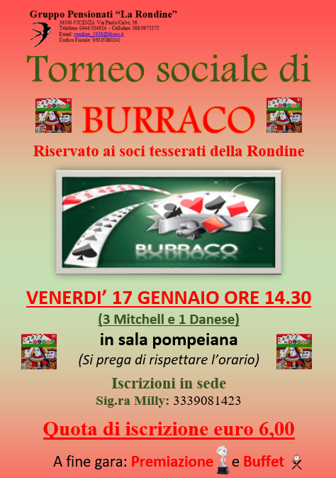 Torneo sociale di Burraco (3 Mitchell e 1 Danese).