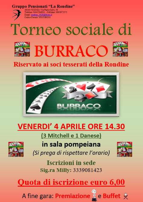 Torneo sociale di Burraco (3 Mitchell e 1 Danese).