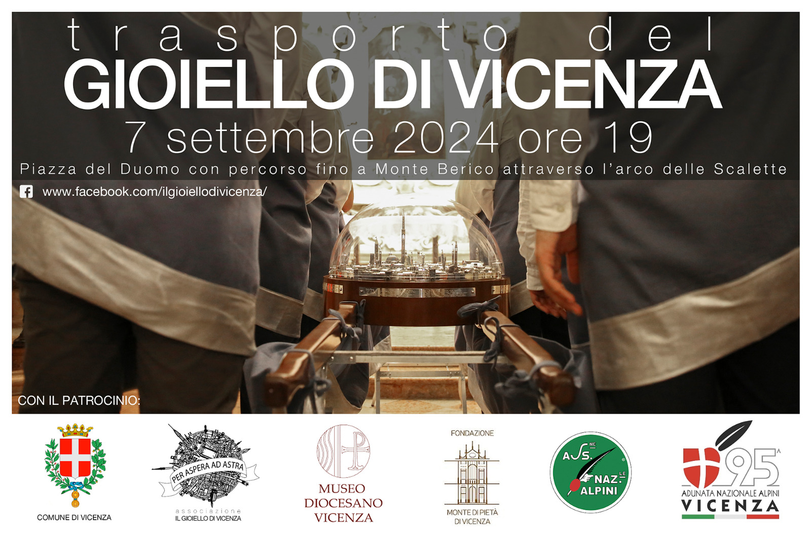 La collaborazione tra le istituzioni storiche della città alla manifestazione incontra anche la Fondazione Monte di Pietà, custode del prezioso Santuario di San Vincenzo di piazza dei Signori, il vero punto di partenza del percorso del Gioiello, che lì riceve la benedizione prima di ripartire per Monte Berico. Con l’arrivo a Monte Berico, il corteo incontrerà il vescovo mons. Giuliano Brugnotto, il priore Carlo Rossato con i Servi di Maria di Monte Berico, le autorità e i fedeli che rinnoveranno la partecipazione alla festa patronale dell’otto settembre.