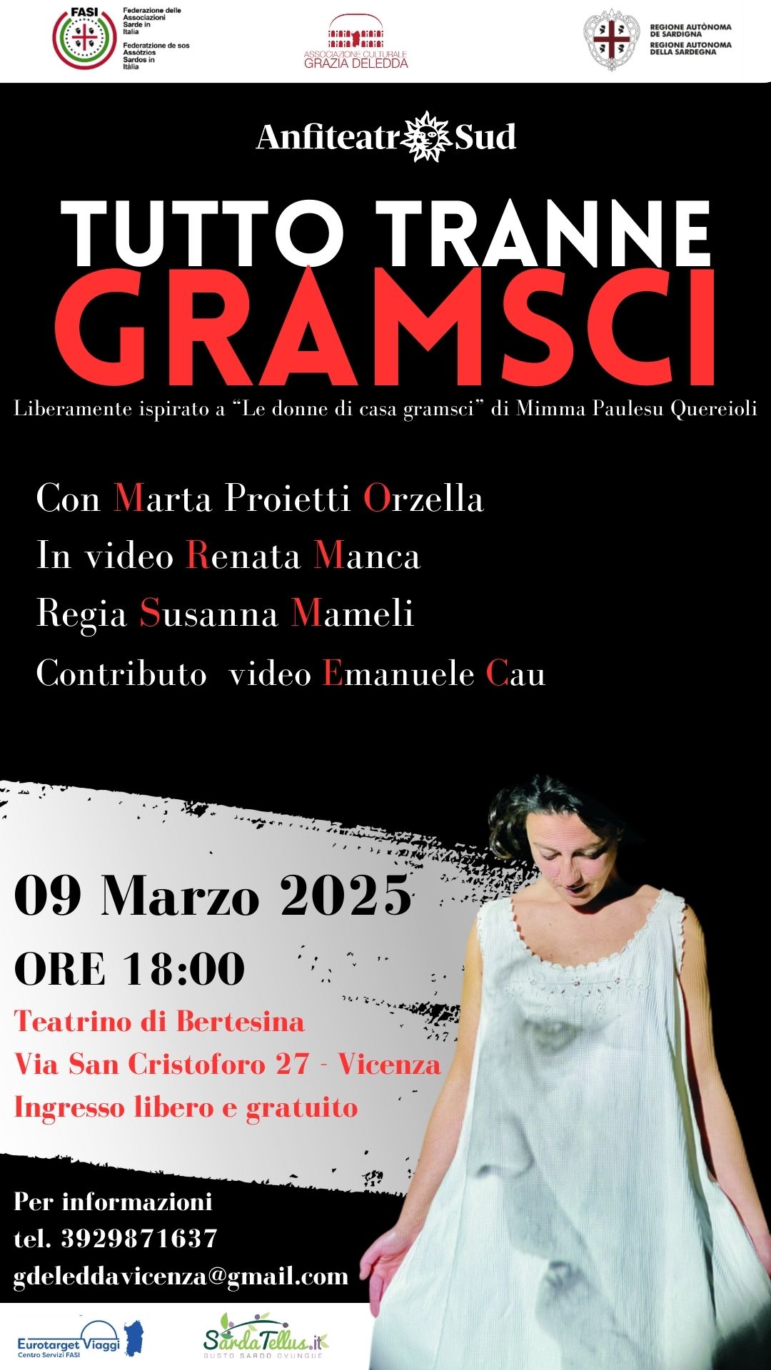 …Lo spettacolo si concentra sugli anni vissuti in Sardegna, la base formativa attraverso cui Antonio Gramsci ha smontato e ricomposto il “Mondo” nelle varie discipline in cui si è cimentato. La Sardegna ha rappresentato il metro e la misura il contrasto giusto per conferire ai suoi studi e riflessioni una dimensione globale.