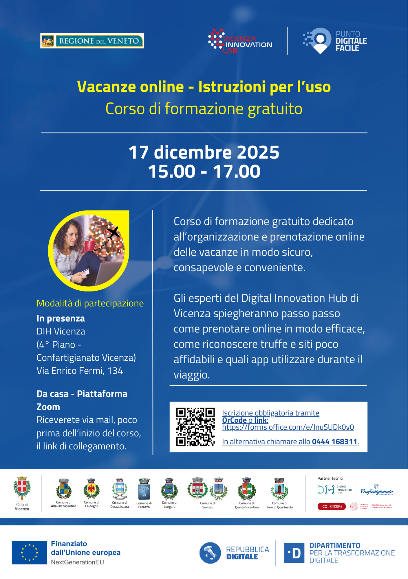 L’iniziativa gratuita, rivolta a cittadini italiani e stranieri, intende offrire un corso pratico pensato per organizzare e prenotare le vacanze in modo sicuro, consapevole e conveniente. Gli esperti del Digital Innovation Hub di Vicenza spiegheranno passo passo come prenotare online in modo efficace, come riconoscere truffe e siti poco affidabili e quali app utilizzare durante il viaggio.