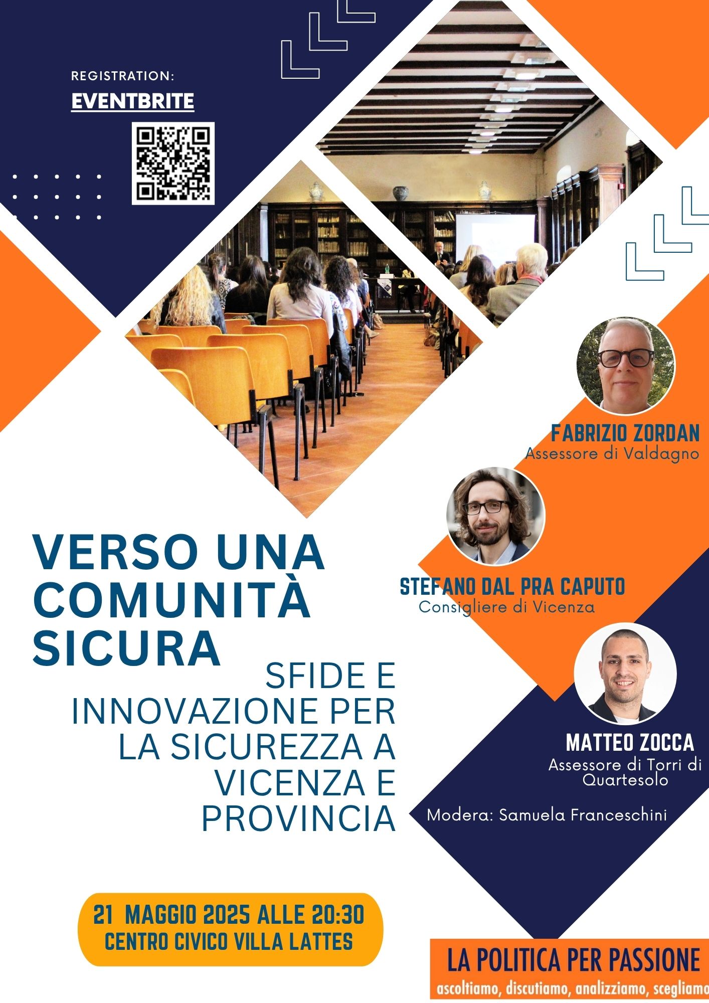 L’incontro, dal titolo “Verso una Comunità Sicura: Sfide e Innovazione per la Sicurezza a Vicenza e Provincia”, con i seguenti relatori: Stefano dal Pra Caputo, Consigliere di Vicenza Fabrizio Zordan, Assessore del Comune di Valdagno, e Matteo Zocca, Assessore del Comune di Torri di Quartesolo.