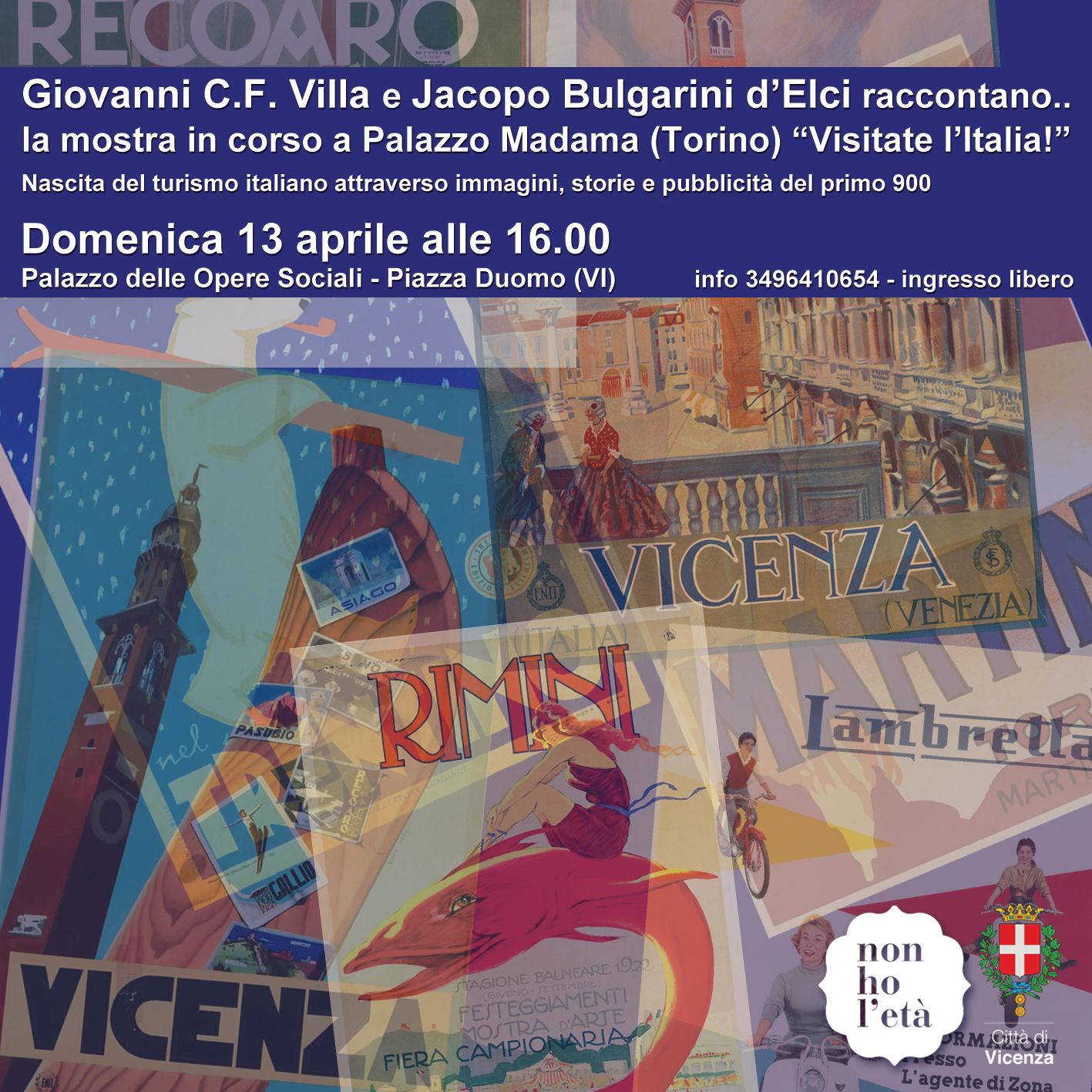 Come è nata l’immagine globale dell’Italia turistica? Quando - e come - si sono affermate le località che ancora oggi consideriamo iconiche? Domenica 13 aprile alle ore 16, nel salone del Palazzo delle Opere Sociali in piazza Duomo a Vicenza, va in scena un viaggio coloratissimo e affascinante alla scoperta di come, tra 1900 e 1950, si è costruito e poi diffuso l’immaginario turistico italiano. Un racconto visivo, storico e culturale affidato a due voci: Giovanni Villa, direttore di Palazzo Madama di Torino e co-curatore della mostra Visitate l’Italia! Promozione e pubblicità turistica 1900-1950, e Jacopo Bulgarini d’Elci, curatore del video di mostra, realizzato con materiali d’epoca. L’incontro sarà accompagnato da immagini, manifesti e filmati originali dagli anni ‘20 agli anni ‘50.