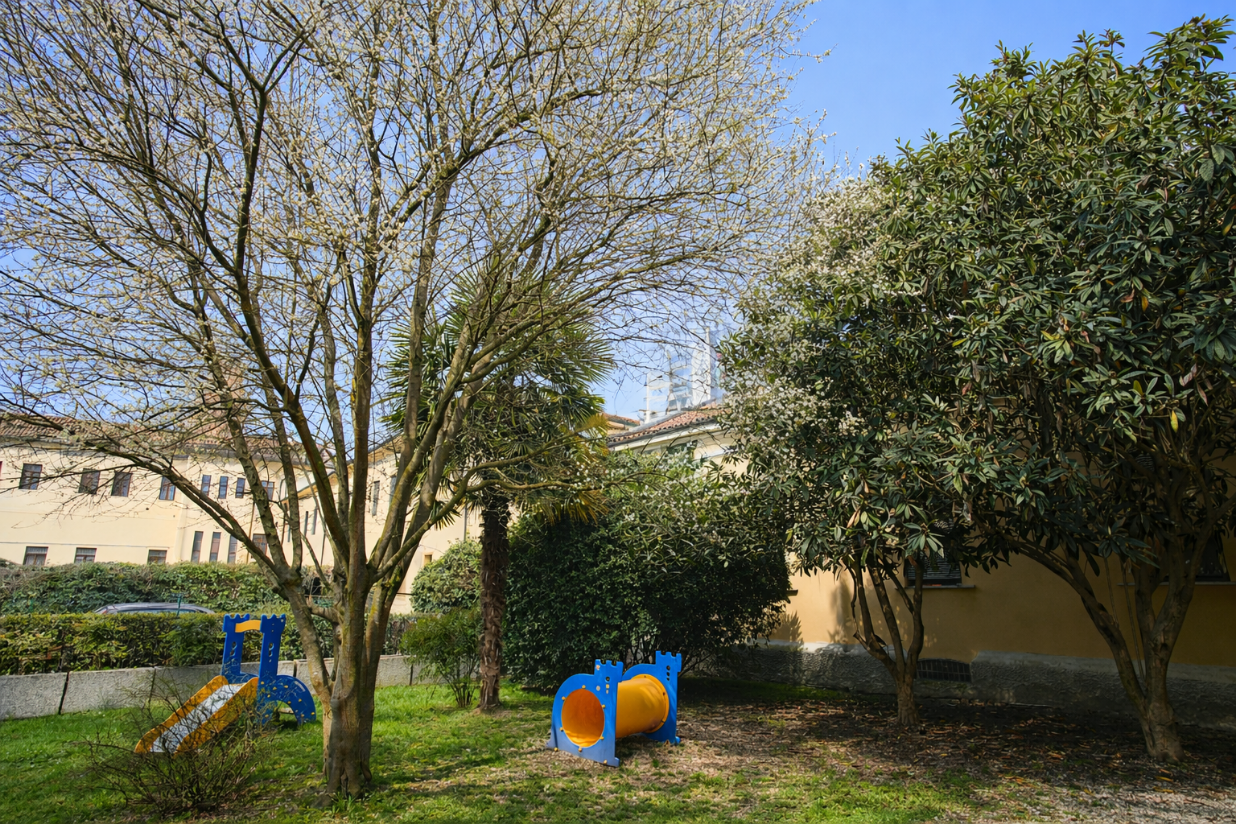 Pur trovandosi in una zona centrale della città, l’asilo nido gode di una posizione tranquilla e riparata dal traffico e dai rumori urbani. Dispone inoltre di un’area verde interna, sicura e riservata, pensata per favorire le attività e i giochi all’aperto dei bambini.